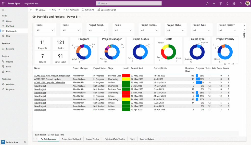 • Comprehensive Reporting: Power BI dashboards provide detailed reporting across programs and portfolios.