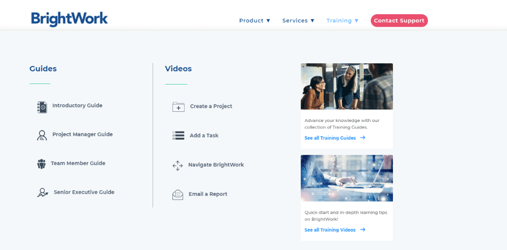 Secondly, show how SharePoint is configured and set up to make their job easier to accomplish. Use role-based training guides to support each person for the job at hand. Project portfolio management solutions such as BrightWork ship with a range of training and configuration guides to support your internal roll-out.