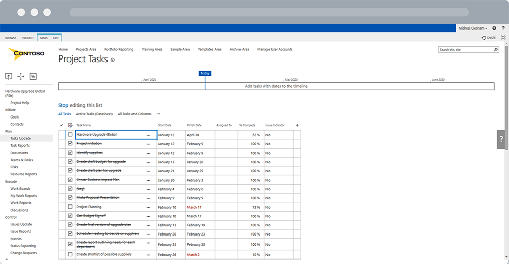 The SharePoint project management template is quite intuitive and does not require any technical or SharePoint expertise.
