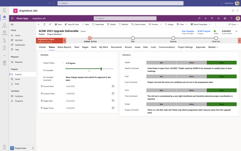 BrightWork 365 is a powerful, low-code project management solution designed to help organizations standardize and optimize their project workflows within Microsoft 365. Built on Power Platform, BrightWork 365 provides seamless integration with Microsoft tools like Power BI, Power Automate, SharePoint, and Teams, ensuring a unified project management environment.