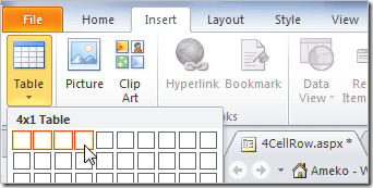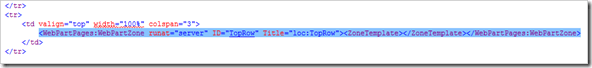 Click Insert and then Table and insert a table with 1 row and 4 columns in the <td></td> cell that you just removed the webpart zone from.