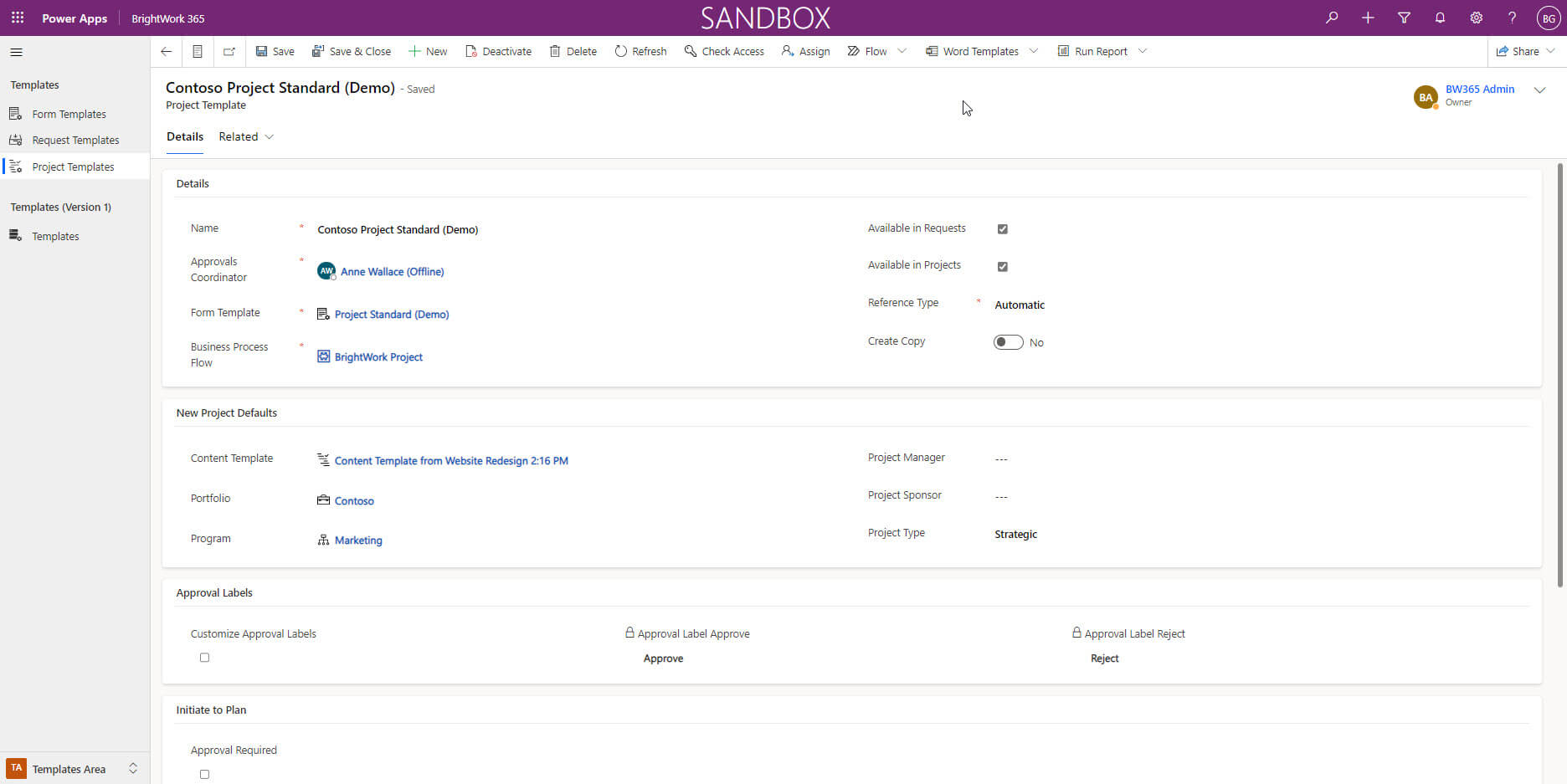 Project Portfolio Management Templates are the foundation of your PMO built on Microsoft 365. In BrightWork 365, the Templates Area allows you to configure request templates tailored to various project types.