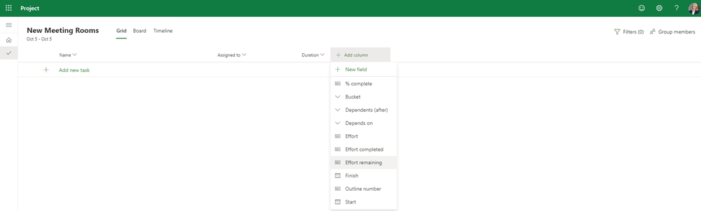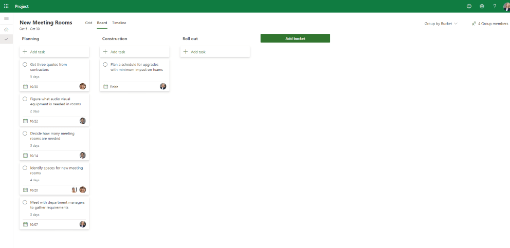 In the next section, you’ll see how to plan a project to install new meeting rooms with Project for the web.