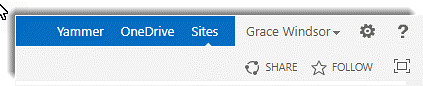 The menu bar contains links to apps such as Yammer and OneDrive.