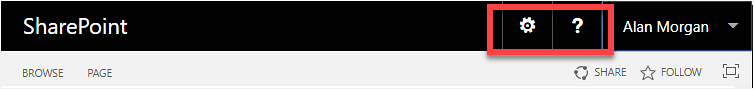 The settings button is now located to the left of your login ID, which helps differentiate it from earlier Microsoft SharePoint versions.