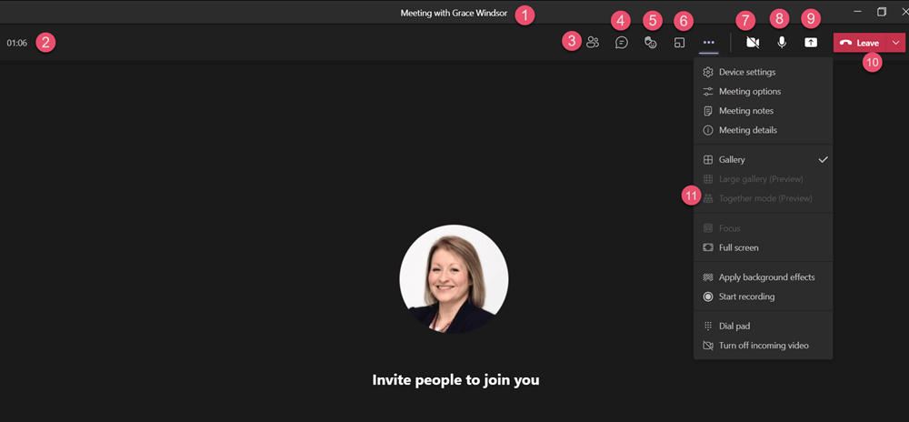 Let’s review the in-meeting menu, accessible at the top of the meeting window.