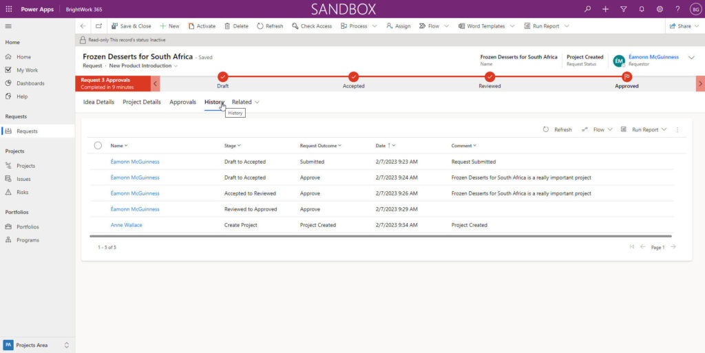 BrightWork 365 leverages Microsoft Power Automate and Power Apps to deliver powerful, low-code business process automation. From initiating projects to managing approvals and sending real-time notifications, these tools reduce manual effort and increase accuracy.