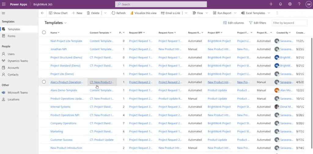 In your BrightWork 365 Project Portfolio Management software overview, you have ‘Requests’. These request templates help you ensure that the right projects get started at the right time and with the right team. Your new project requests go through a 4-stage process of Draft, Review, Approve, and Create Project. Each process gives your team a ‘request form’ to fill in the project details. These forms can be customized based on the type of project. All valid requests to start a new project go through the Draft, Review, and Approve phases, and then eventually a project gets created if that’s the right and the desired outcome. BrightWork 365 has created this automated project request management process using Microsoft Power Automate.
