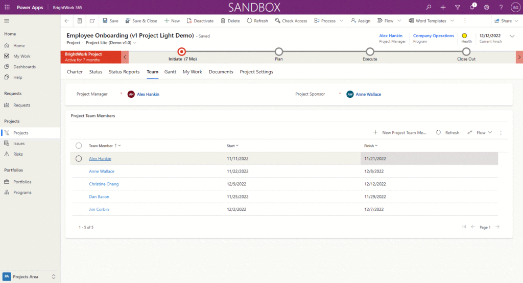 BrightWork 365 delivers a range of Microsoft 365 project portfolio management templates that integrate with Power Platform and Teams.