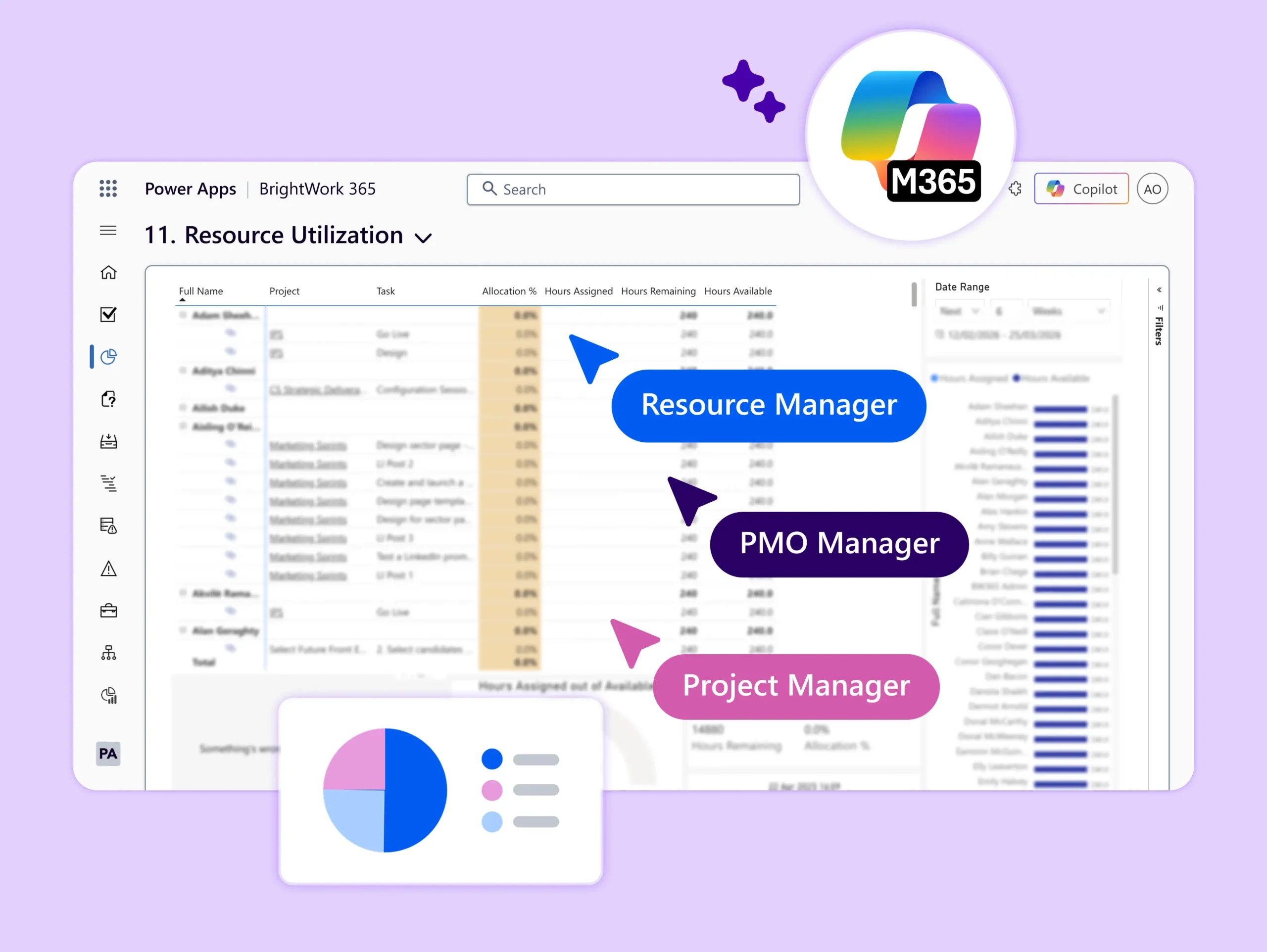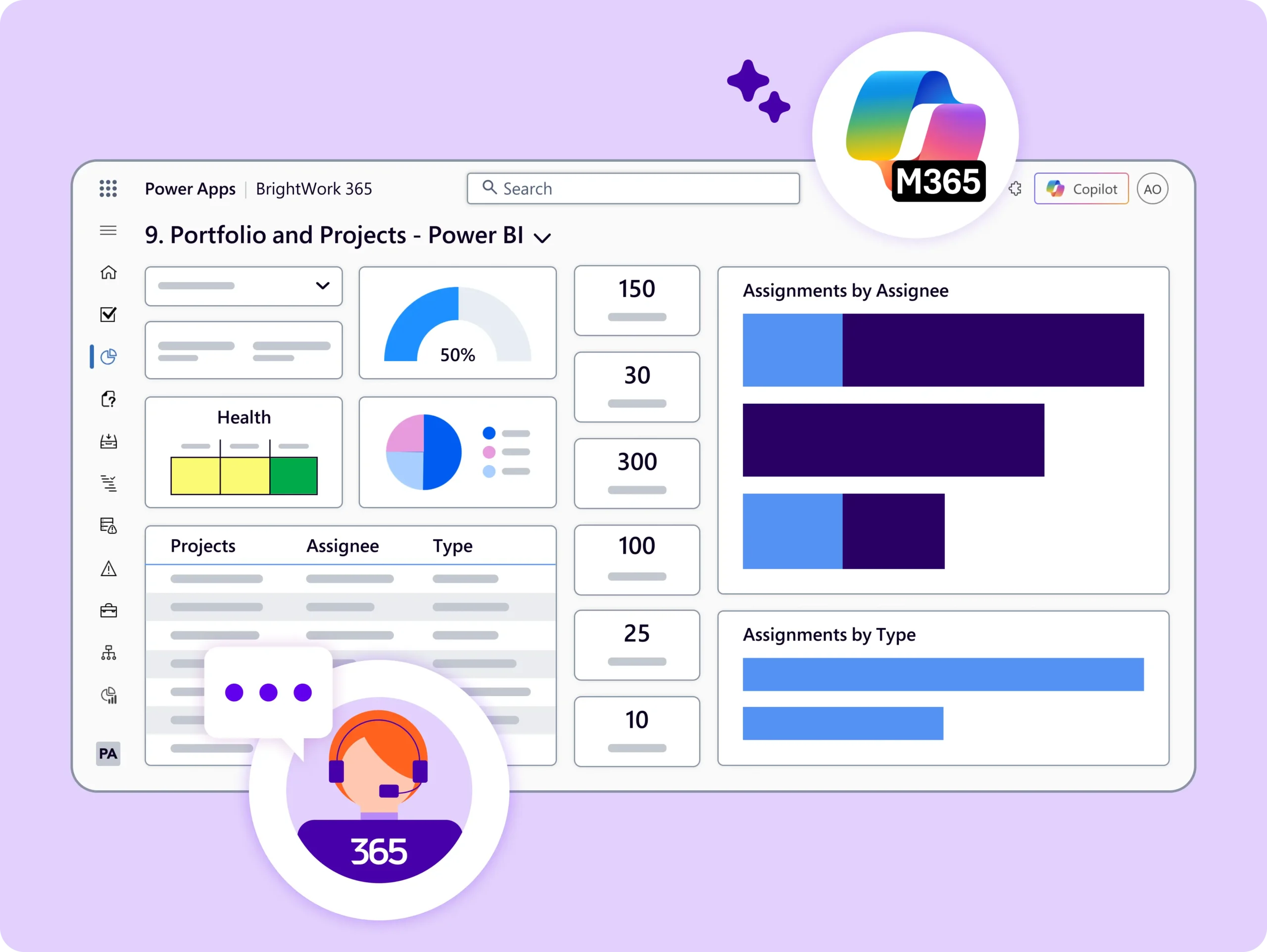Get actionable insights with Power BI. BrightWork 365 uses Power Platform dashboards and reports to help executives and PMO leads easily access, analyze, and act on growing project data.