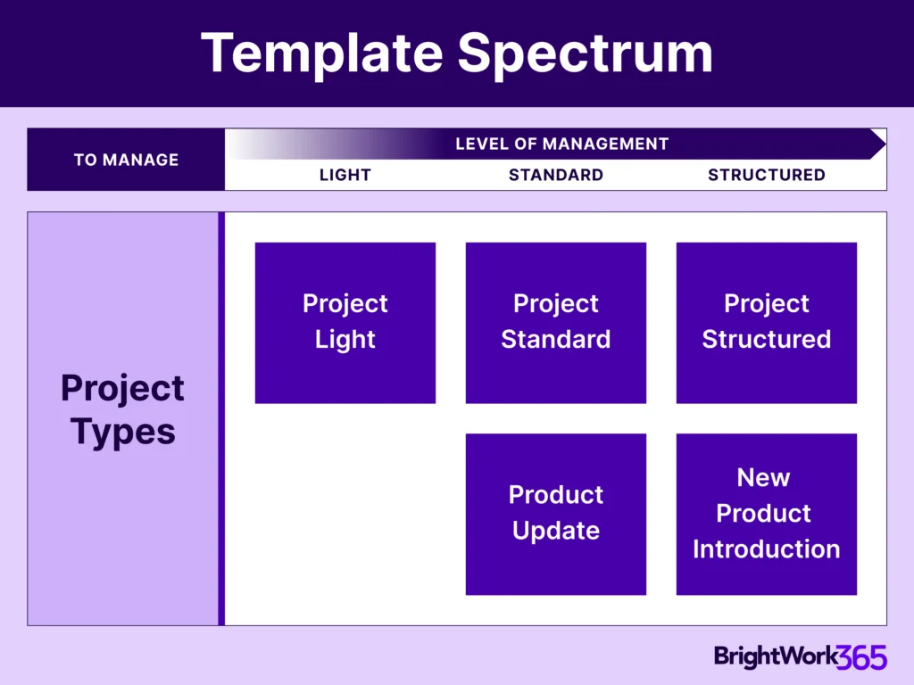 • The BrightWork 365 Solution includes templates for projects, portfolios, day-to-day work management, and collaboration.