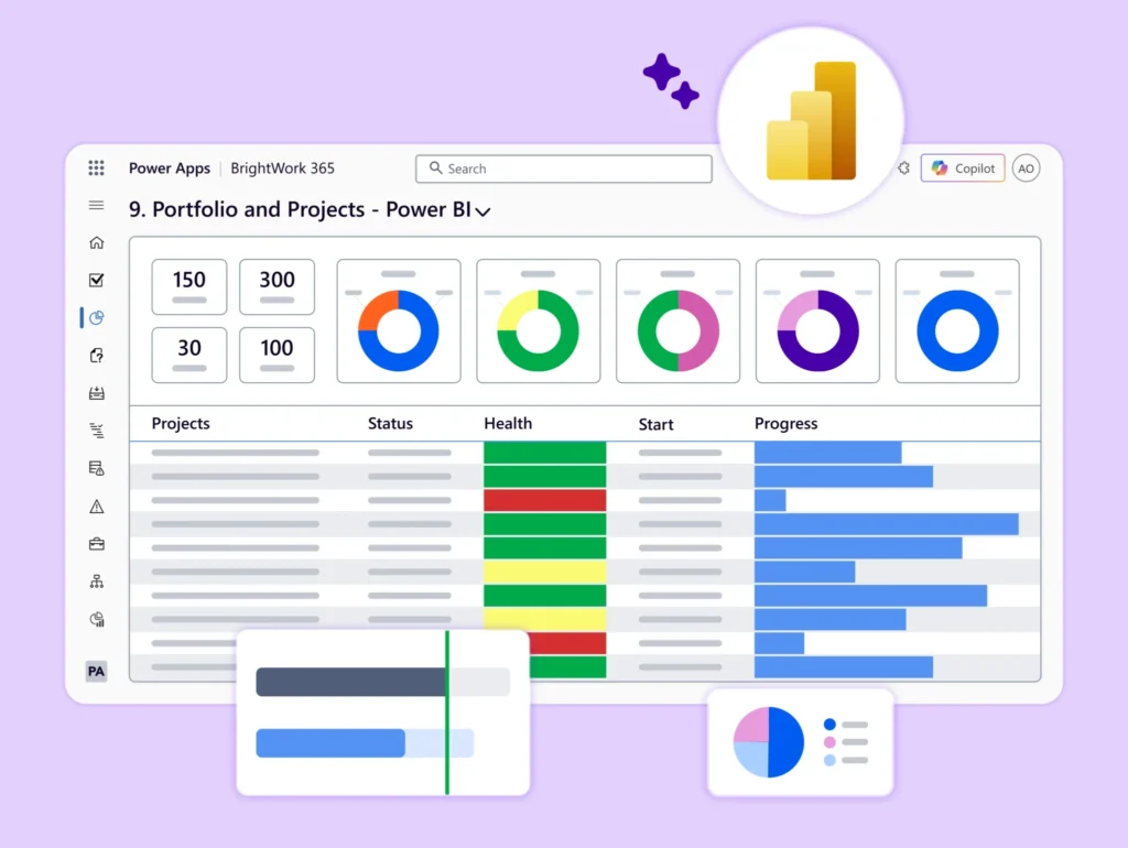 Using Power BI dashboards and reports, BrightWork 365 helps senior executives and PMO leads to easily access, analyze, and action this data.