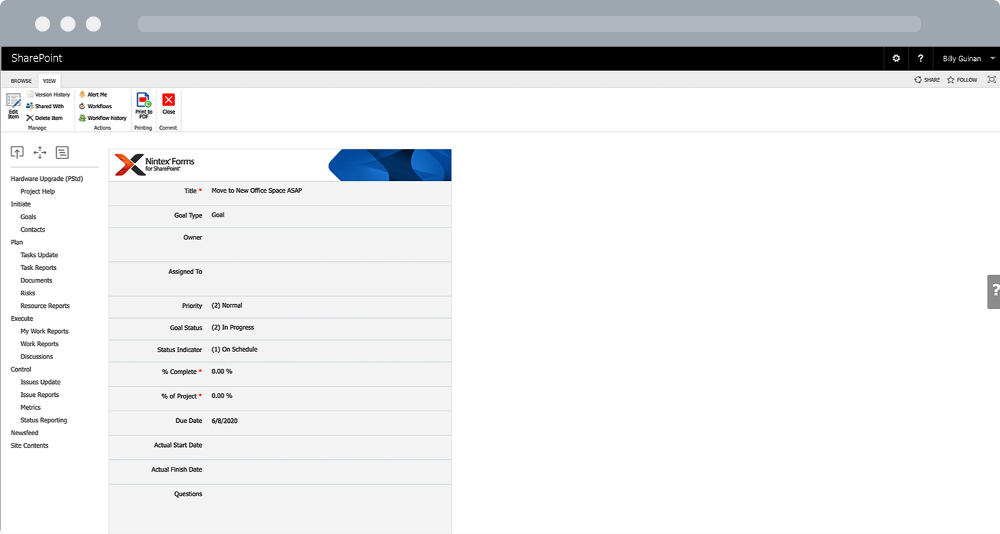 Using Nintex Forms on your projects digitizes all your project documentation, making searching for and accessing information easier.