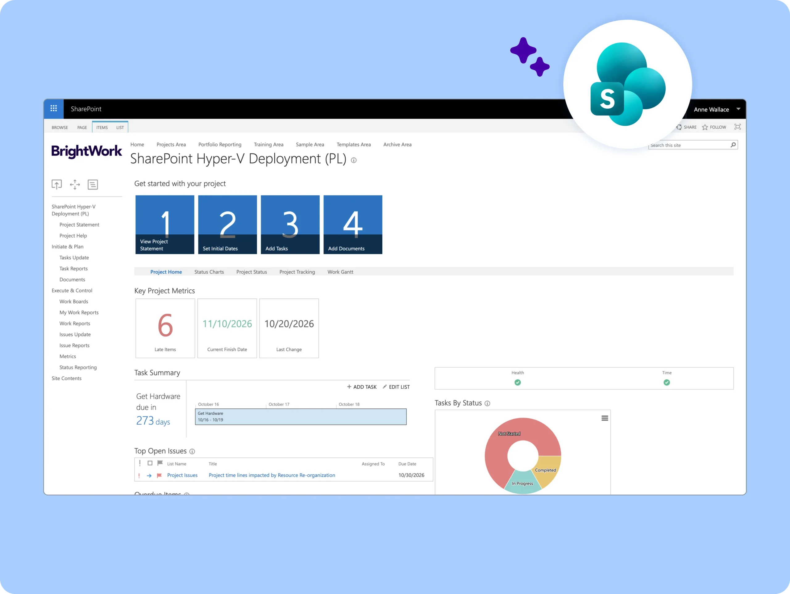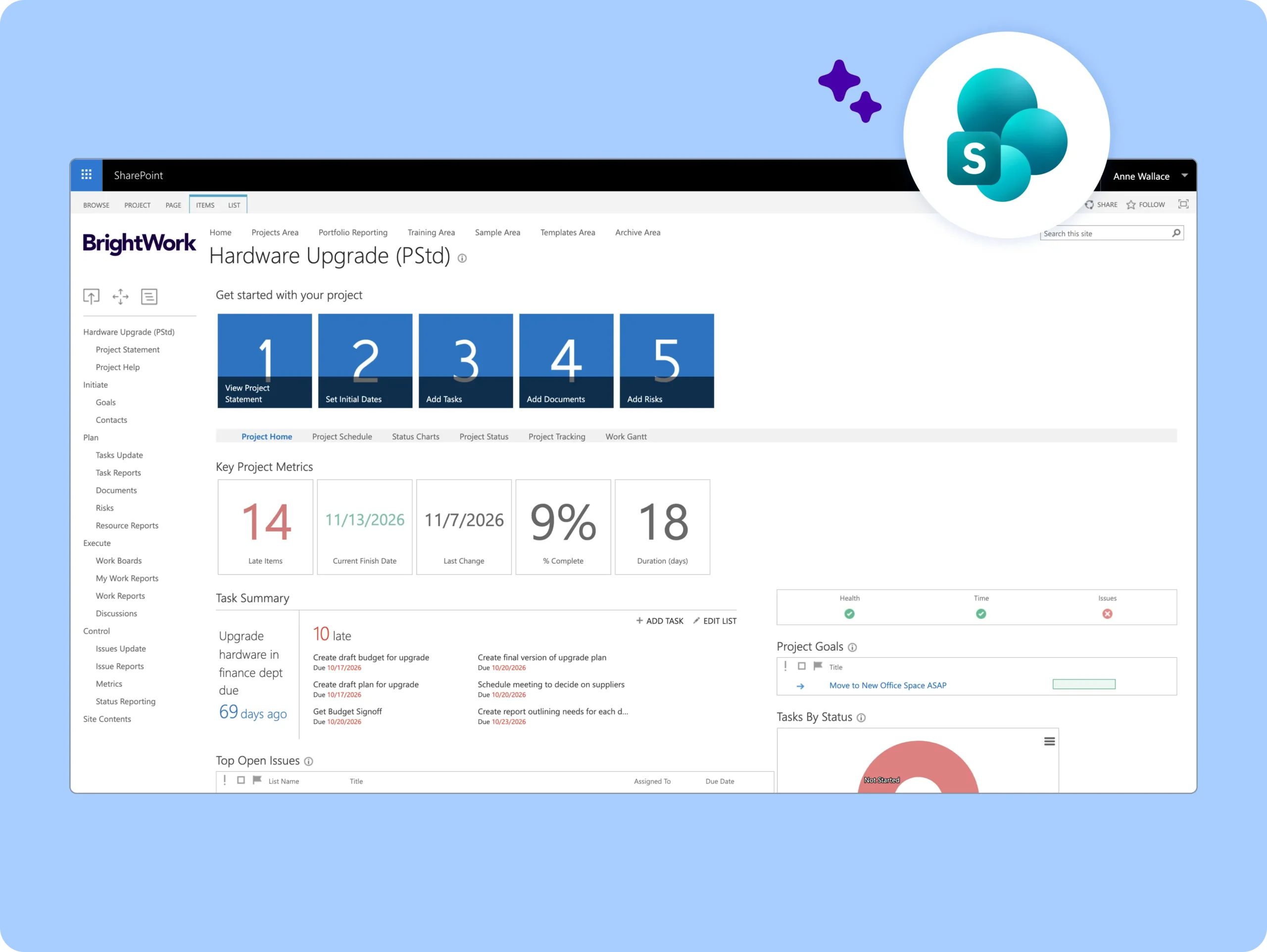 The free SharePoint project management template is packed with lists, web parts, and reports to help you manage and re-plan your projects using SharePoint On-Premises.