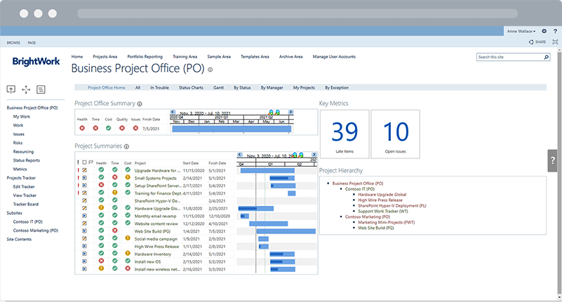 “[With] BrightWork, we can have multiple projects that all roll up to one status report or dashboard, that can be used by senior executives and project sponsors to see exactly where the project is.”