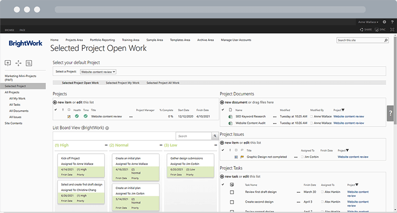 Move tasks forward with out-of-the-box SharePoint workflows or create custom workflows with the BrightWork and Nintex integration.