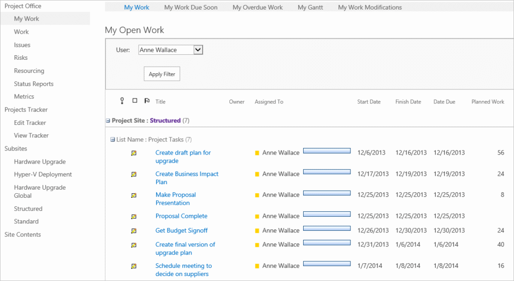 • Click the link to the Hardware Upgrade site in the Project Hierarchy web part.
