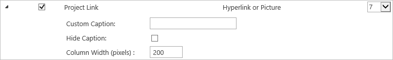 • Enter 200 in the Project Link Column Width field.