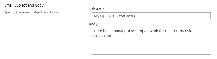 • Enter a subject, e.g. Your Open Work.