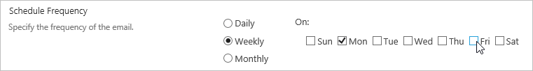 • Deselect Tue, Wed, Thu, and Fri, in the Schedule Frequency section.