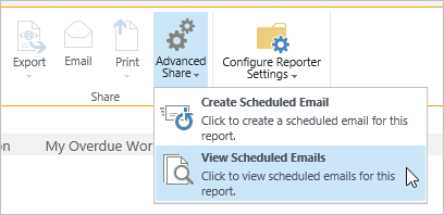 • Click View Scheduled Emails in the Advanced Share button, and then View Item for the scheduled email item.