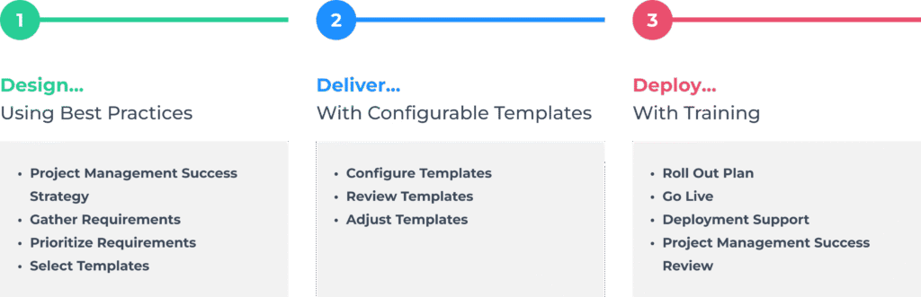 Our 3D Deployment Process (Design, Deliver, Deploy) is a clear, transparent, and practical change management process that is focused on your needs, so we can help you implement collaborative project management with BrightWork.