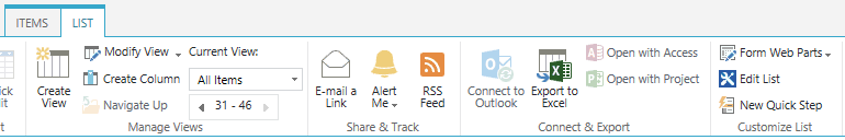 Click a list in the Quick Launch, e.g. Tasks Update.