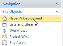 Your Hyper-V Deployment project is now synced to the new template. The changes you have made to the Home Page, the Quick Launch, the Site Wiki, etc. in this guide are now reflected in the project site.