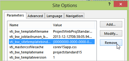 Select vti_bw_sitetemplatebinding and click Remove.