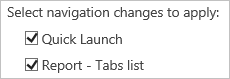 Select Quick Launch and Report – Tabs list checkboxes.