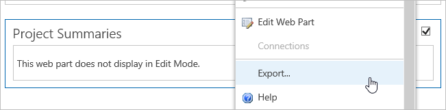 Click Export on the desired Web Part menu.