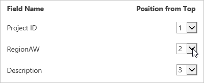 • Select the Region column and set the ‘Position from Left’ to 2.