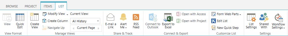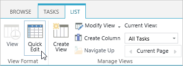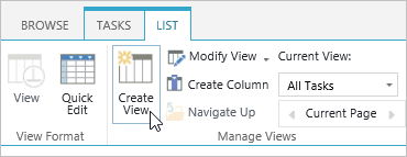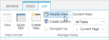 • Click Edit Tracker on the Quick Launch and click List | Modify View.
