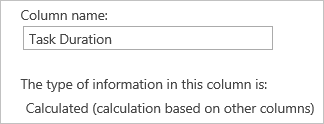 In this section you will add a calculated column that automatically calculates how long a task is going to take to complete, based on the information entered into the Start Date and Finish Date columns.