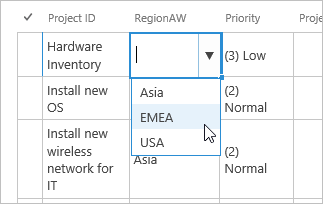 • Click Project Statement on the Quick Launch.Note that there is now a Region column in the Project Statement.