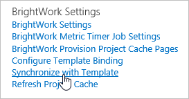 BrightWork includes a feature called Template Design Sync. This feature allows you to make changes to a template, and then pull those changes into all project sites created from the template.