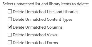 • Select Delete Unmatched Columns.This is the feature that will delete the Customer Reference column you added to the Tasks list in the site.