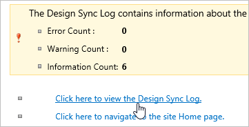 The Design Sync Log informs you about the main changes that were made and any issues that the sync raised.