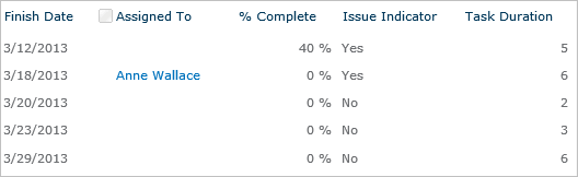 • Click Tasks Update on the Quick Launch. Note there is no Task Duration column.